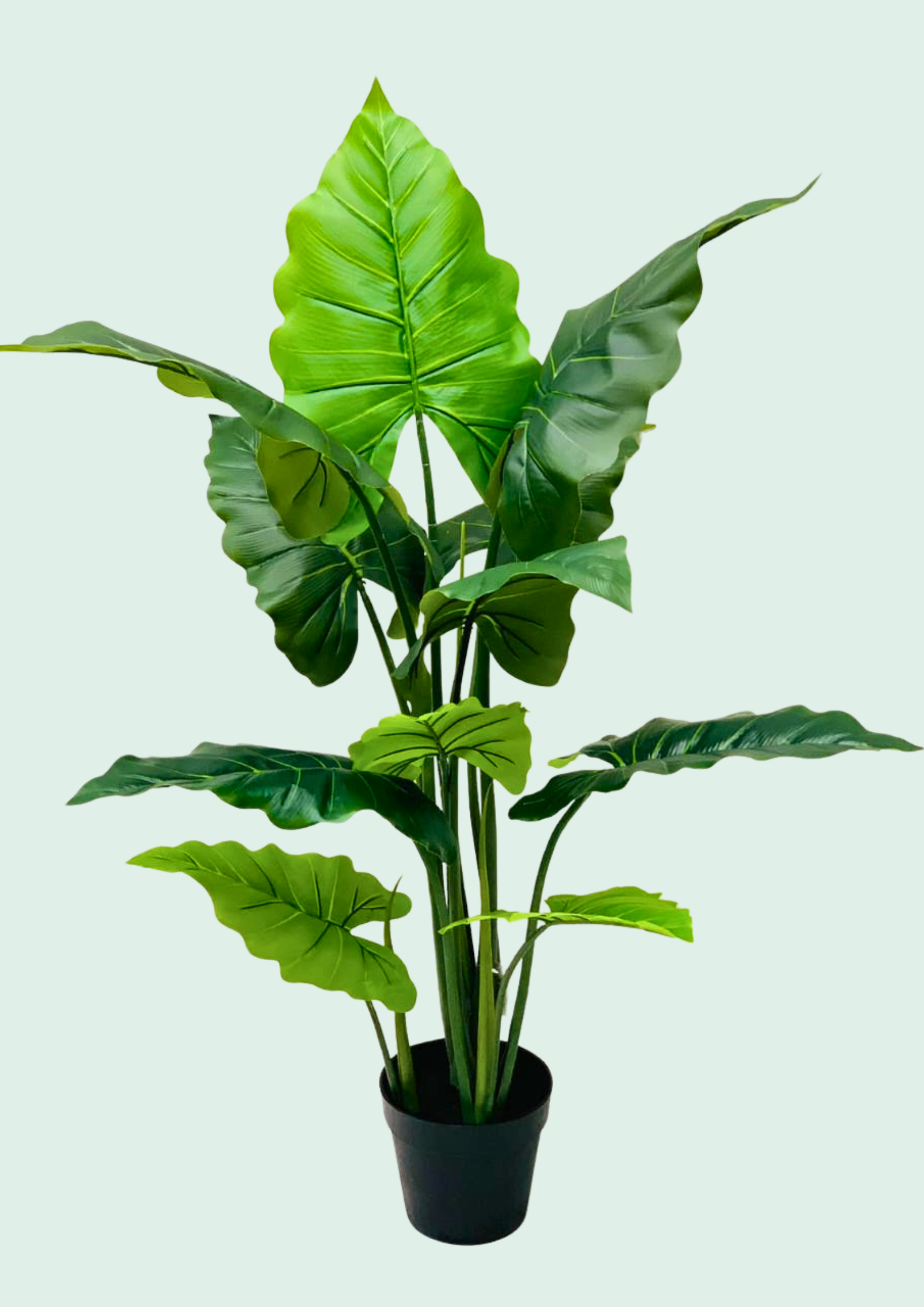 This bold artificial plant captures the architectural beauty of the Alocasia Macrorrhizos (Giant Taro). Standing at 120cm, it features thick, sturdy stems supporting expansive, shield-like leaves in a vibrant green. The “Real Touch” material ensures the foliage feels waxy and authentic, while the prominent veins add visual depth. Housed in a standard black pot, its upright growth habit makes it perfect for narrow corners or flanking entryways in modern homes and offices.