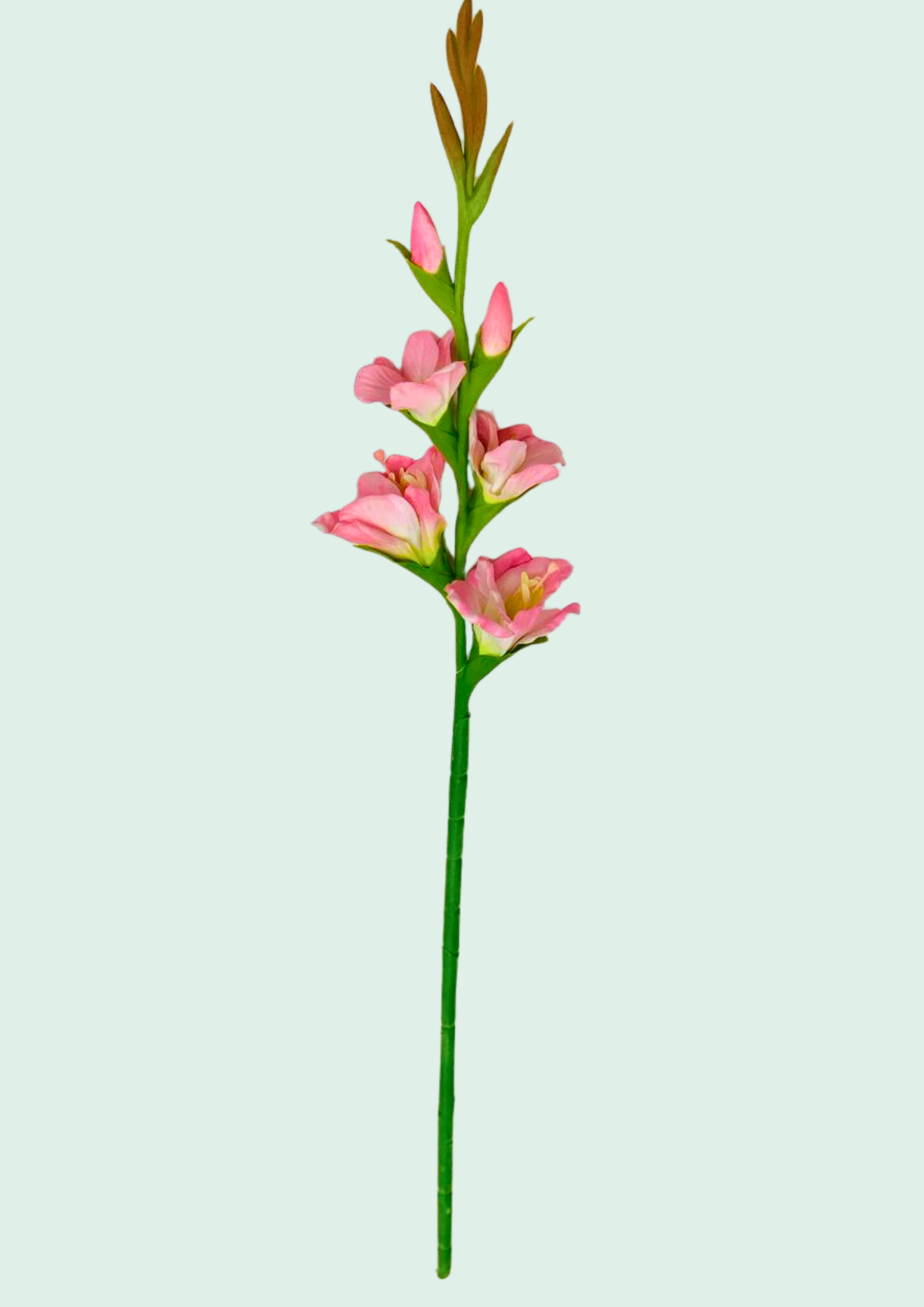 This impressive artificial flower stem captures the stately elegance of the Gladiolus (Sword Lily). Standing tall at 90cm, the thick green stem supports a vertical arrangement of large, ruffled flowers that open gradually towards the top, mimicking the natural blooming habit. Crafted with premium “Real Touch” technology, the petals have a soft, velvety texture that feels incredibly authentic. Available in romantic Pink, classic White, and bold Red, these stems add striking height and color to floor vases, church arrangements, or large entryway displays. They offer the grandeur of fresh gladioli without the need for water or staking.