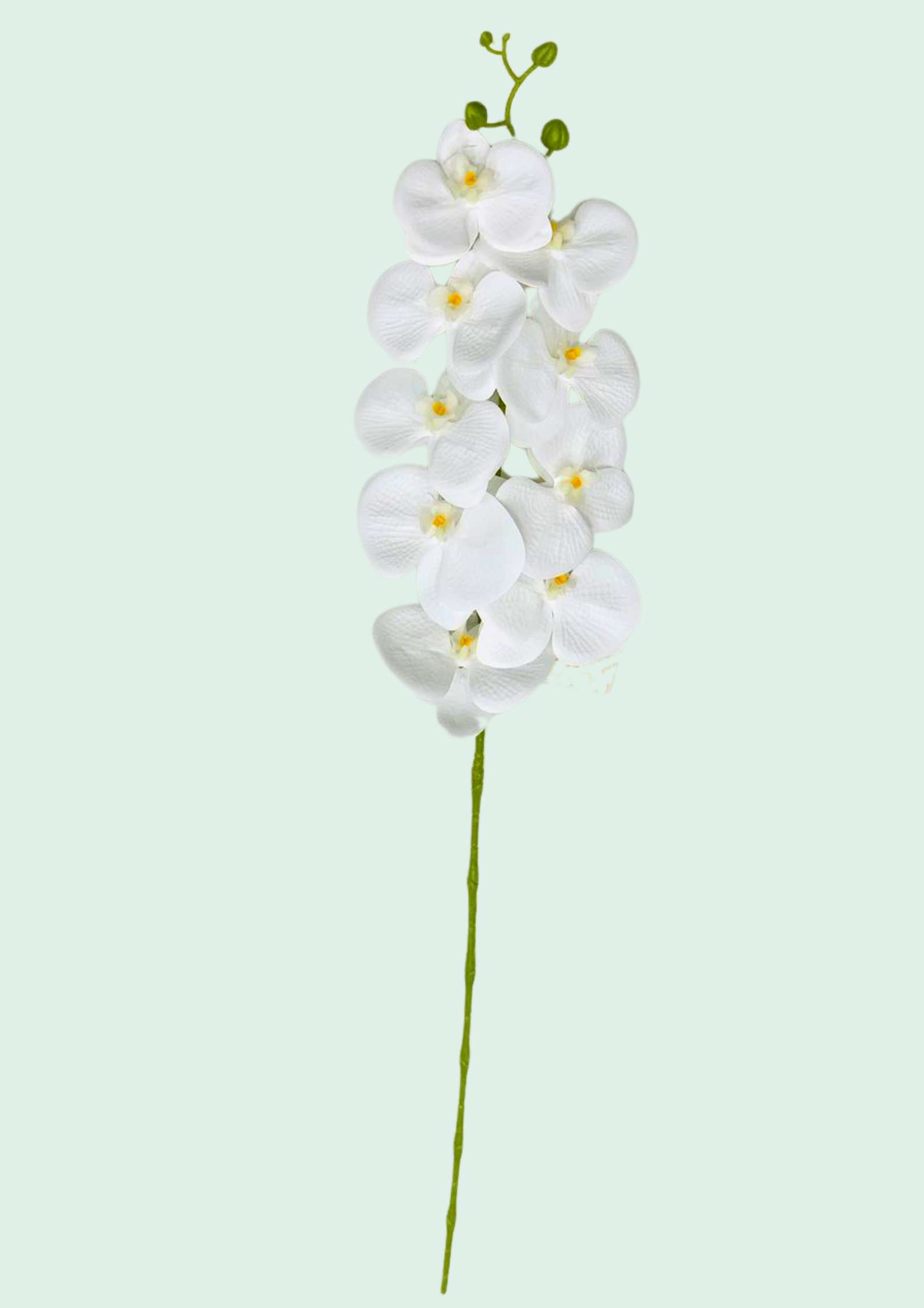 An elegant 90cm artificial orchid stem featuring 9 large “Real Touch” blooms and realistic buds for a sophisticated display.