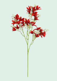 This refined artificial flower branch is perfect for adding a touch of delicate beauty to your home. Measuring 90cm, the slender stem branches out to reveal clusters of petite flowers that open into a distinct 5-pointed star shape. Available in Red, White, and a Mixed bouquet, these “Star Flowers” offer a light and airy texture, making them ideal as a filler for larger arrangements or as a sophisticated standalone display in tall, narrow vases.