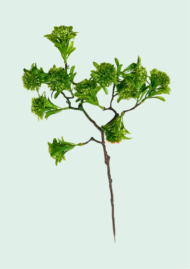 These distinctive artificial branches add texture and intrigue to any floral arrangement. Measuring 60cm, they feature a realistic brown woody stem that branches out to hold clusters of soft, fuzzy buds resembling Wildflower, Albizia, or Mimosa blooms. Available in a two-tone Pink/Green or a fresh Solid Green, these stems are excellent for adding depth and a natural, “wild” aesthetic to tall vases or rustic bouquets.